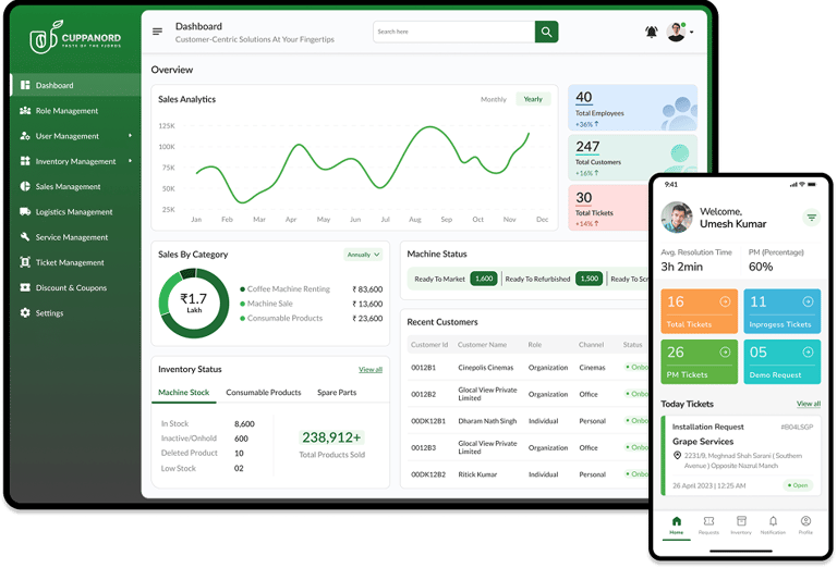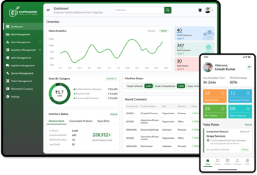 A custom-built CRM enabling a coffee brand to streamline sales, customer management and service operations across web and mobile.